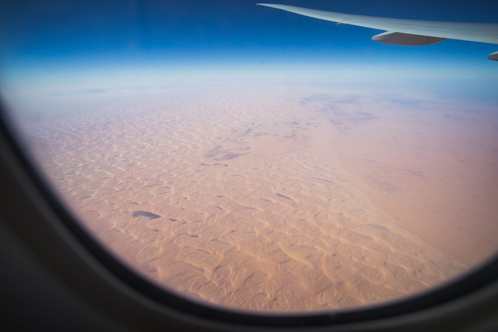 ドバイからカサブランカへのフライトはサハラ砂漠を豪快に横断して行く。「本当にスキーできるのかな」と不安を覚えた