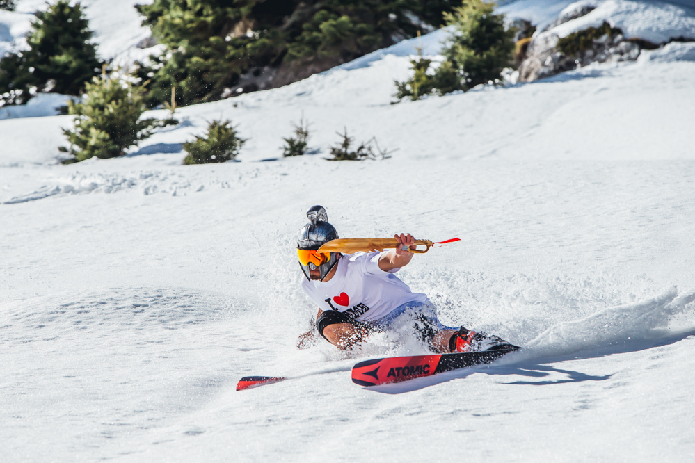 「見ていろ! 俺が本当のスキーを見せてやるぜ!」