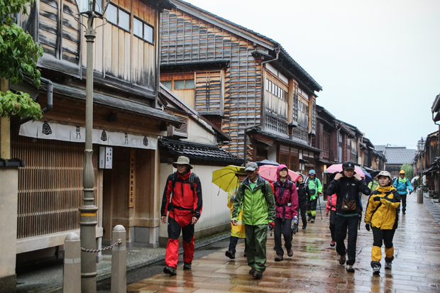 金沢トレイルを作る際に、ルート設定をどのようにするか話し合った結果、いくつかのキーワードをもとにルートを決めたそうです。そのキーワードとは、「金沢らしい場所」「里山保全」「過疎地域の活性化」だったといいます。スタート地点が「金沢城」であったり、「主計町」や「ひがし茶屋街」がルートに入っているのは、そうゆうことだったのです。
