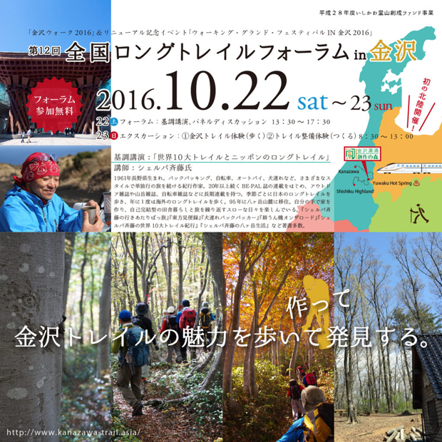 2016年に金沢で行われた「全国ロングトレイルフォーラム」のフライヤー。