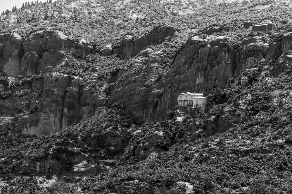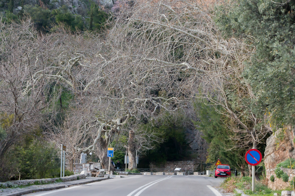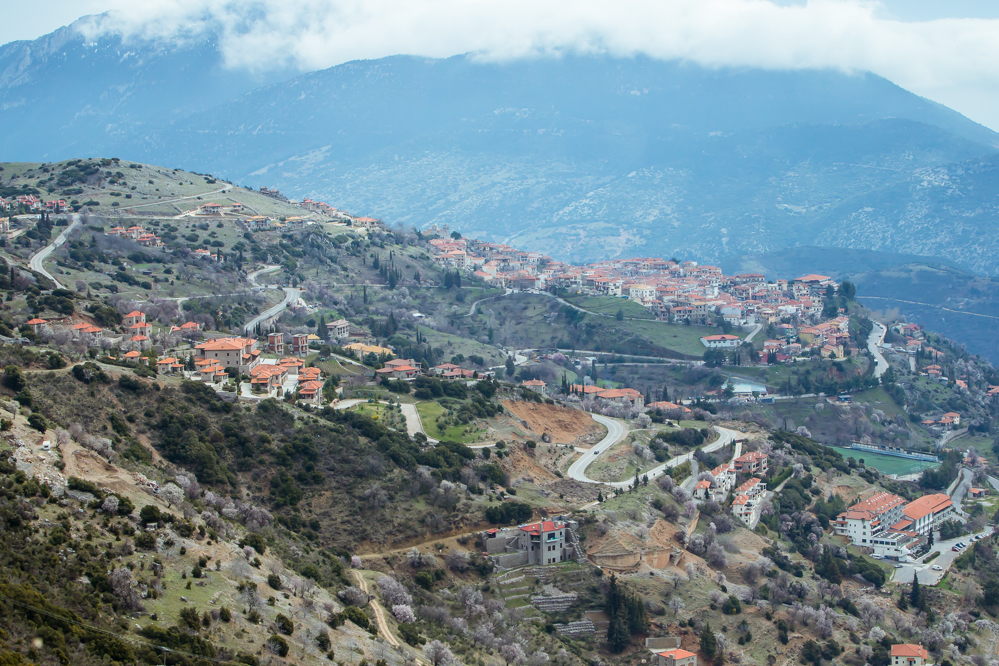 デルフィを出発して20分。圧倒的なボリューム感で聳え立つパルナッソス山が見えてきた。地中海性気候のギリシャは、冬が雨季にあたるので、標高約1,000m以上には結構雪が積もるのだ。