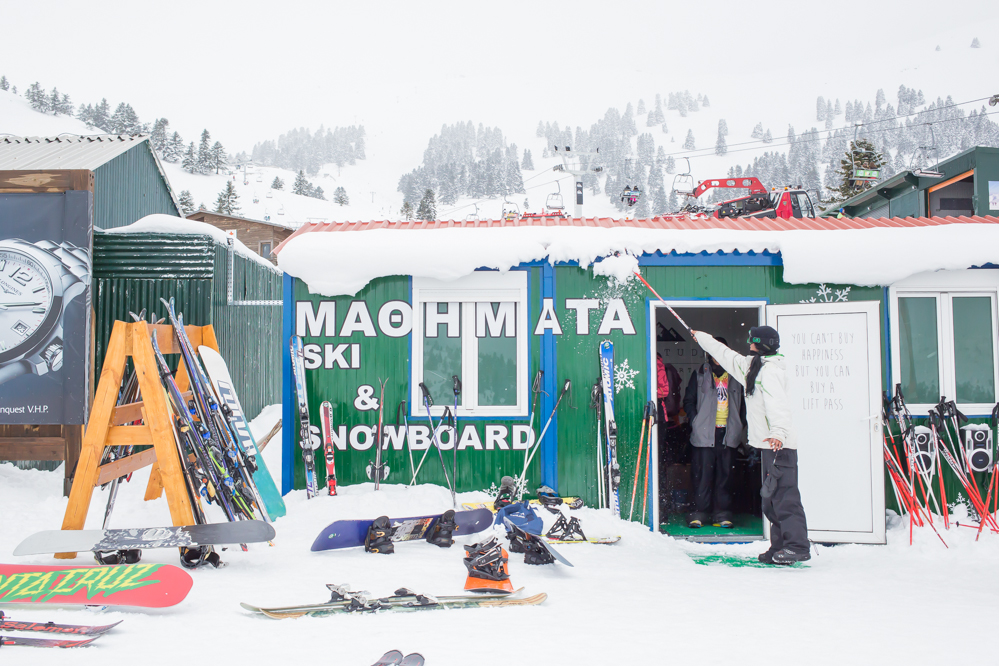 なんでもないスキー場の光景に、ギリシャならではのスキー文化を感じる。スキー場に行けば、地元のスキーヤーに出会うことができるのが嬉しい。