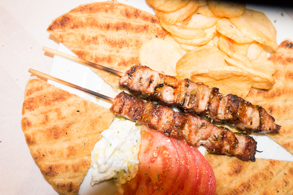 世界のどこに行っても見かける肉の串焼き。これが大衆ギリシャ料理のスタンダードだ。
