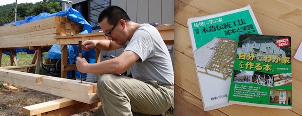 建築の教科書にしたのは氏家誠悟さんの『自分でわが家を作る本』(山と溪谷社)。セルフビルドのバイブルというか、教科書となるのはこの本くらいしかないんです。細かい技術のお手本にしたのはネット上にある大工さんのサイトや動画でした。『自分でわが家を〜』を読んで概要を把握し、細かい技術はプロ向けの技術書を引き、わからなければネット動画を確認する。今ではネット上にお手本がたくさんあるので、本よりも簡単に、感覚的に学べますね。