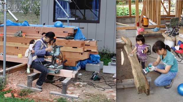 「着工と同時に娘が誕生。ときに嫁は娘を背負って作業にあたりました」