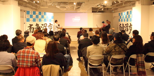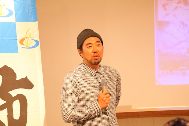 国内外のスノーリゾートと南魚沼の自然を見比べたあとに登場したのが、南魚沼産コシヒカリのおにぎりと、南魚沼の水で仕込まれた地ビール。トークショーに引き続いては、南魚沼市の食を楽しみながらの懇親会へと突入!