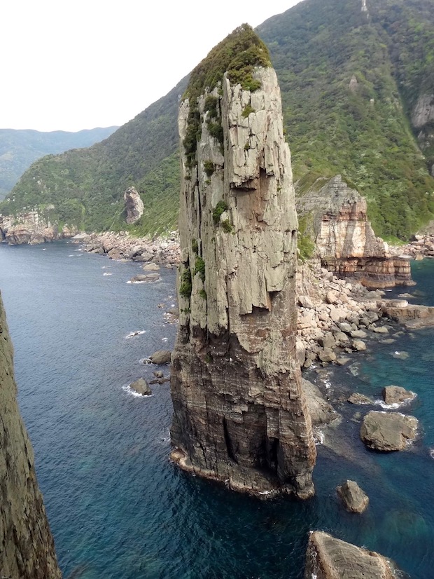 ちなみに上の画像は、鹿児島県にある下甑島(しもこしきじま)というところにある「ヘタ沖瀬(標高約100m)」。この岩峰へは渡し船を使いアプローチし、画像の正面の岩壁を登攀している。