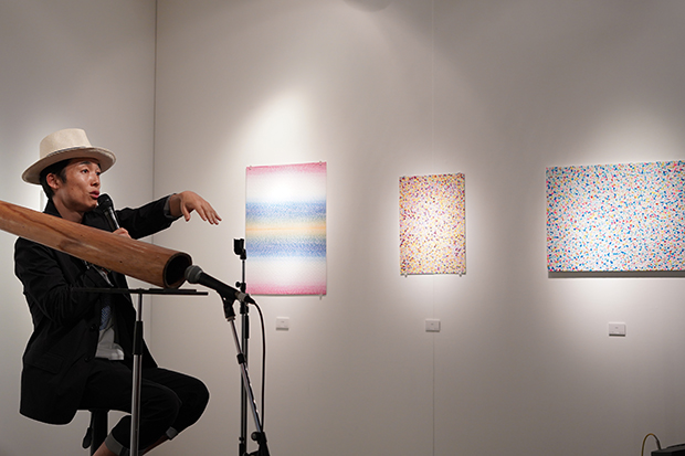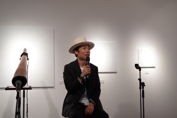 ライブの途中で行われたトークショーでは、GOMA氏が、展示会場の作品についての解説や来場者からの質疑応答を行いました。