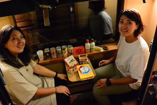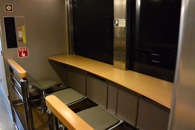 列車内には誰でも使えるラウンジコーナーもあり、車窓の風景を眺めながらここでくつろぐこともできる。みんな静かに寝ているので、ここで騒いだりしないように