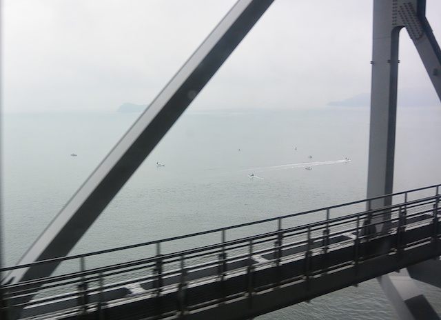 海が見えてるじゃん! もうすぐ岡山だからなんか買ってこようよ!