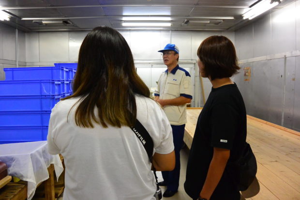 甘いものときたら、次はお酒! というわけで、四国中央市にある地酒「梅錦」の酒蔵へ。ここでは、杜氏といっしょに酒蔵をめぐり、酒造りについてじっくり学ぶ大人の工場見学ができます。