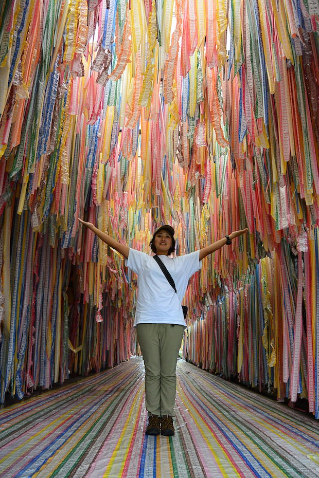 これは、アーティスト in ファクトリーといって、松岡美江さんというアーティストが、別子飴本舗さんと協働で制作したアート作品なんだよ