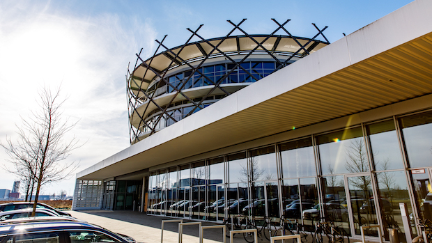 新しくなったドイターのドイツ本社。建物もヒートポンプを使った冷暖房システム、また照明を極力減らすために採光をより多く取り入れるデザインになっている。また、自転車通勤のスタッフのためのシャワールームなども整えられている。