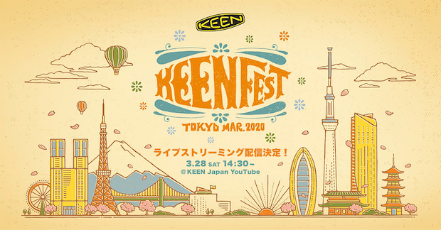 野外でのフェスは開催できなくなってしまったけれど、無料のストリーミング配信のフェスとして「KEENFEST TOKYO MARCH 2020」が開催されると発表された。出演するのは、YOUR SONG IS GOOD、DENIMS、そしてKEENアンバサダーの東田トモヒロ、Ryu Matsuyamaの4組だ。ライブだけではなく、KEENが今までに行い、これからも続けていく社会貢献・環境保護活動などのトークも放映されるという。
