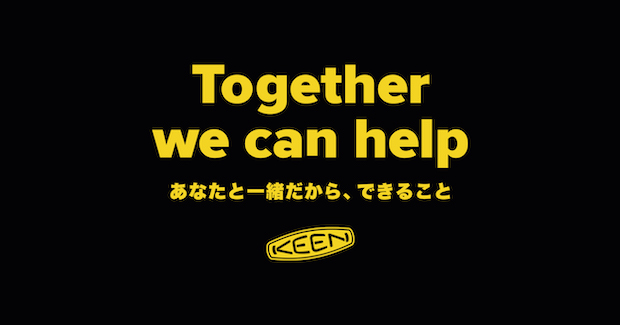 今回のデジタル配信のテーマは「Together we can help あなたと一緒だから、できること」。KEENでは「一緒だから、できること」として、新型コロナウイルスが猛威を振るう中、休まずに現場で働く人や、ご家族のために頑張っている人のために全世界で10万足のシューズやサンダルを無料でプレゼントするというアクションも開始している。