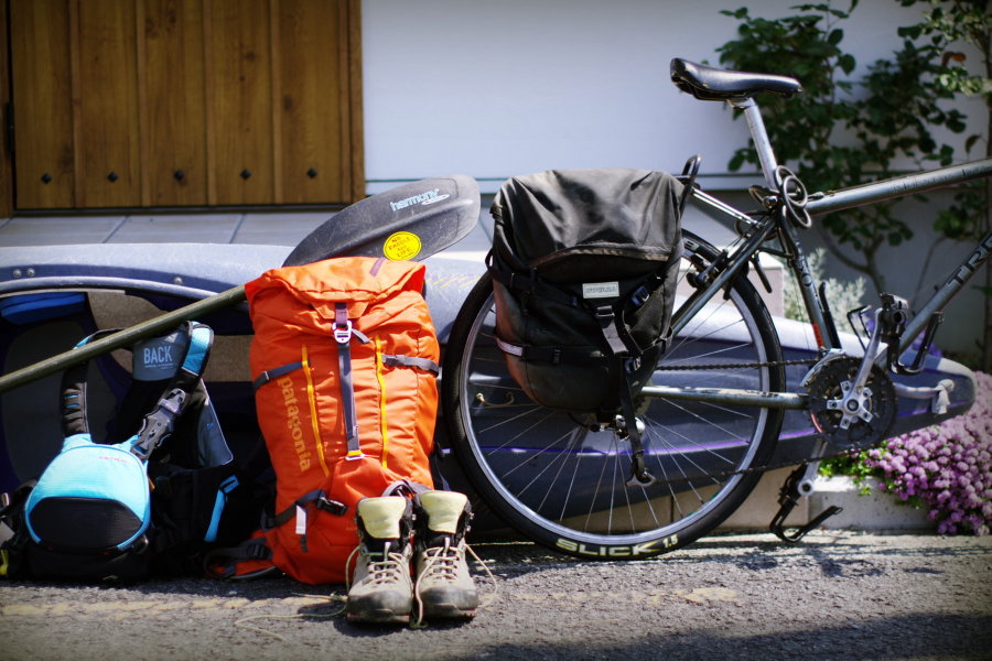 MTB+カヤック+バックパッキングで人力移動(画像はイメージで、九里さんが使用したギアではありません)。