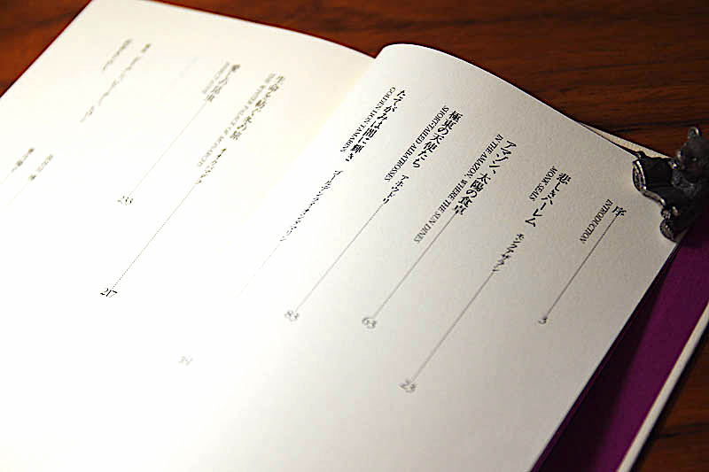 『消えゆくものたち』の目次。ダイアン・アッカーマンが訪ねた場所と生き物は、モンクアザラシ(アメリカ・フレンチフリゲート礁)、アマゾン、アホウドリ(日本)、ゴールデンライオンタマリン(ブラジル)、オオカバマダラ、北米のさまざまな昆虫。