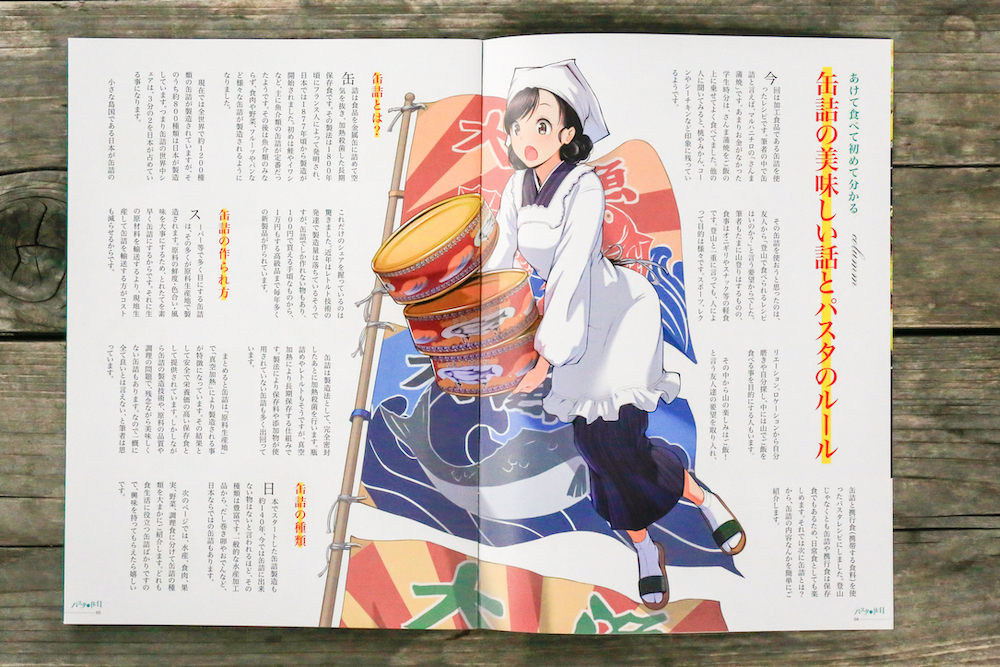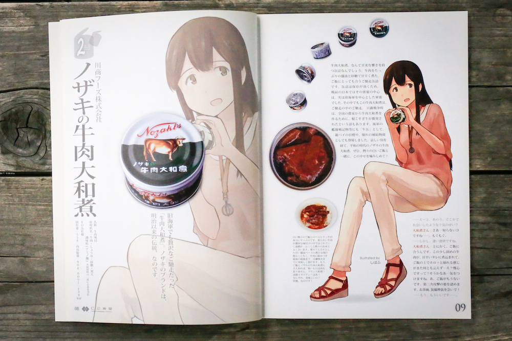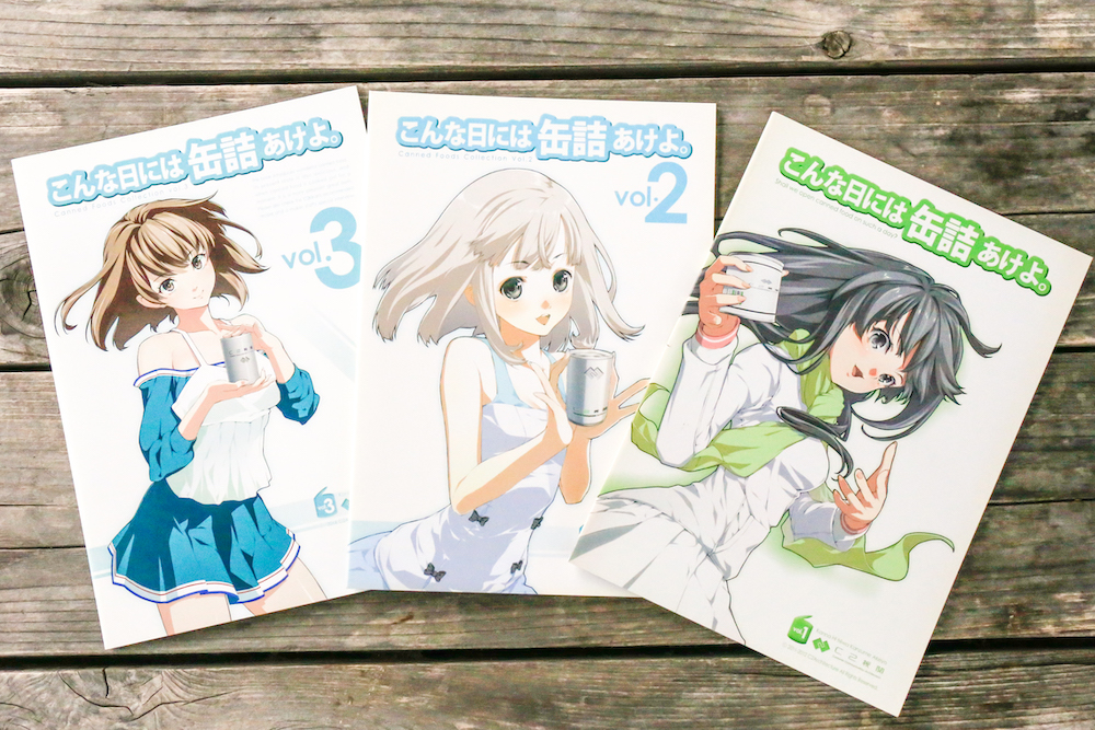 「こんな日には缶詰あけよ。」は2011年から2014年にかけてvol.3までつくられたもので、各巻10種類前後の缶詰をオススメのアレンジレシピとともに紹介し、それぞれ取り上げている缶詰をイメージした女の子が描かれています。艦これのイラストレーターが描いたイラストもチラホラ。