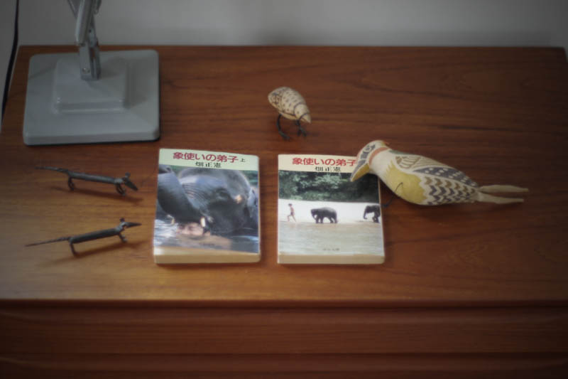 『象使いの弟子(文庫版)上・下』。表紙は、これぞムツゴロウさんという写真だ。