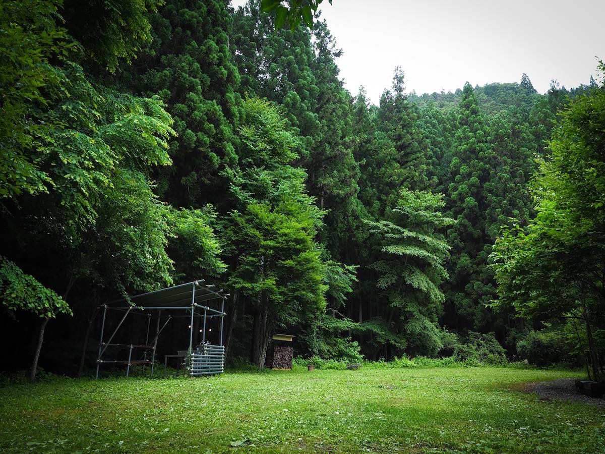 家族が経営する旅館の裏庭を利用したミニマムなキャンプ場であり、キャンプの合間に旅館の温泉を利用できること、キレイなトイレが使えることから、アウトドアに不慣れな人でも気軽に自然を楽しむことのできる空間だ。