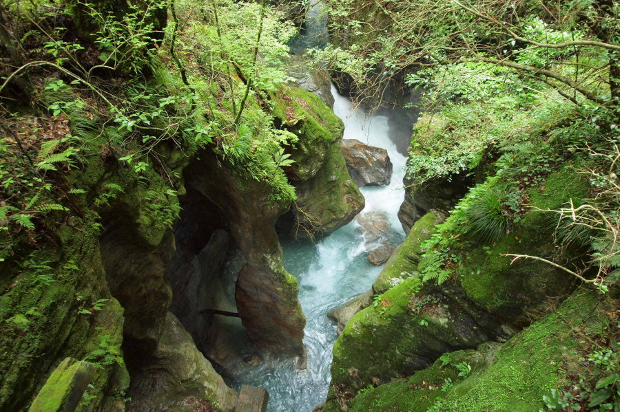 「BLUE BREW」の少し下流にある中津渓谷。Akimama2020.09.04 Fri配信記事では、ここでキャニオニングツアーをしている「仁淀アドベンチャー」をレポートしています。