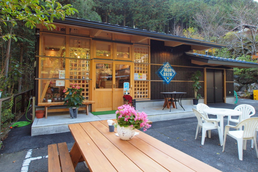 キャンプ場から約500mにクラフトビールの醸造所が、そんなビール好きキャンパーにはたまらぬ状況が四国の秘境に出現しました。グランドオープンは11月1日、場所は仁淀川の支流で、深いV字谷の中津渓谷の少し上流。青く透明な渓流のそばにポツンとある小さな醸造所が「ムカイクラフトブルーイング『BLUE BREW(ブルー・ブリュー)』」です。