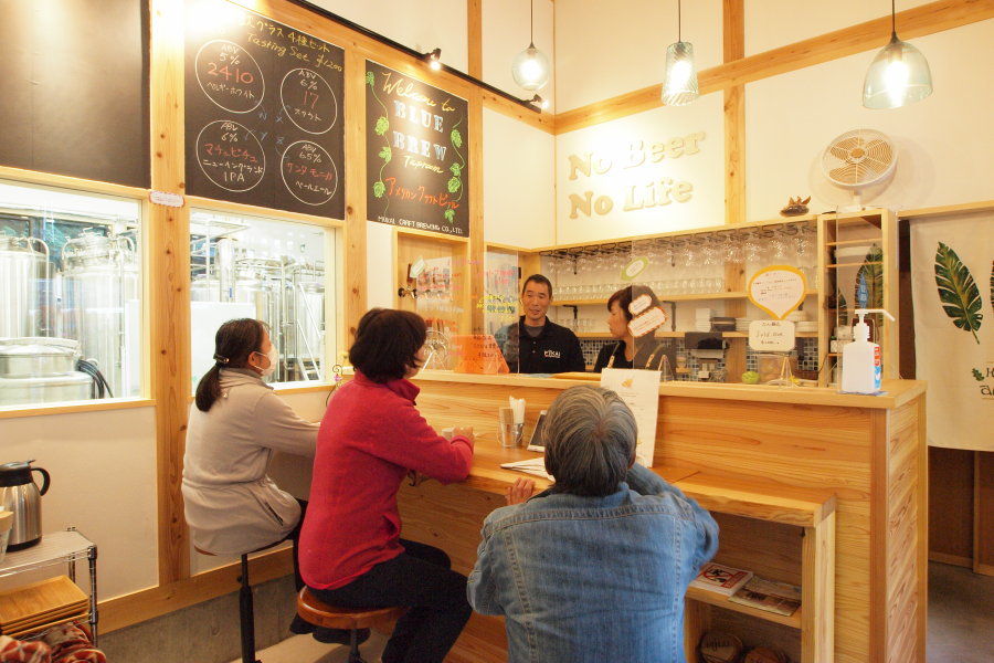 「BLUE BREW」のタップ。取材したときのビールは4種類でしたが、将来はタップの数の種類のビールを醸造するつもりだとか。