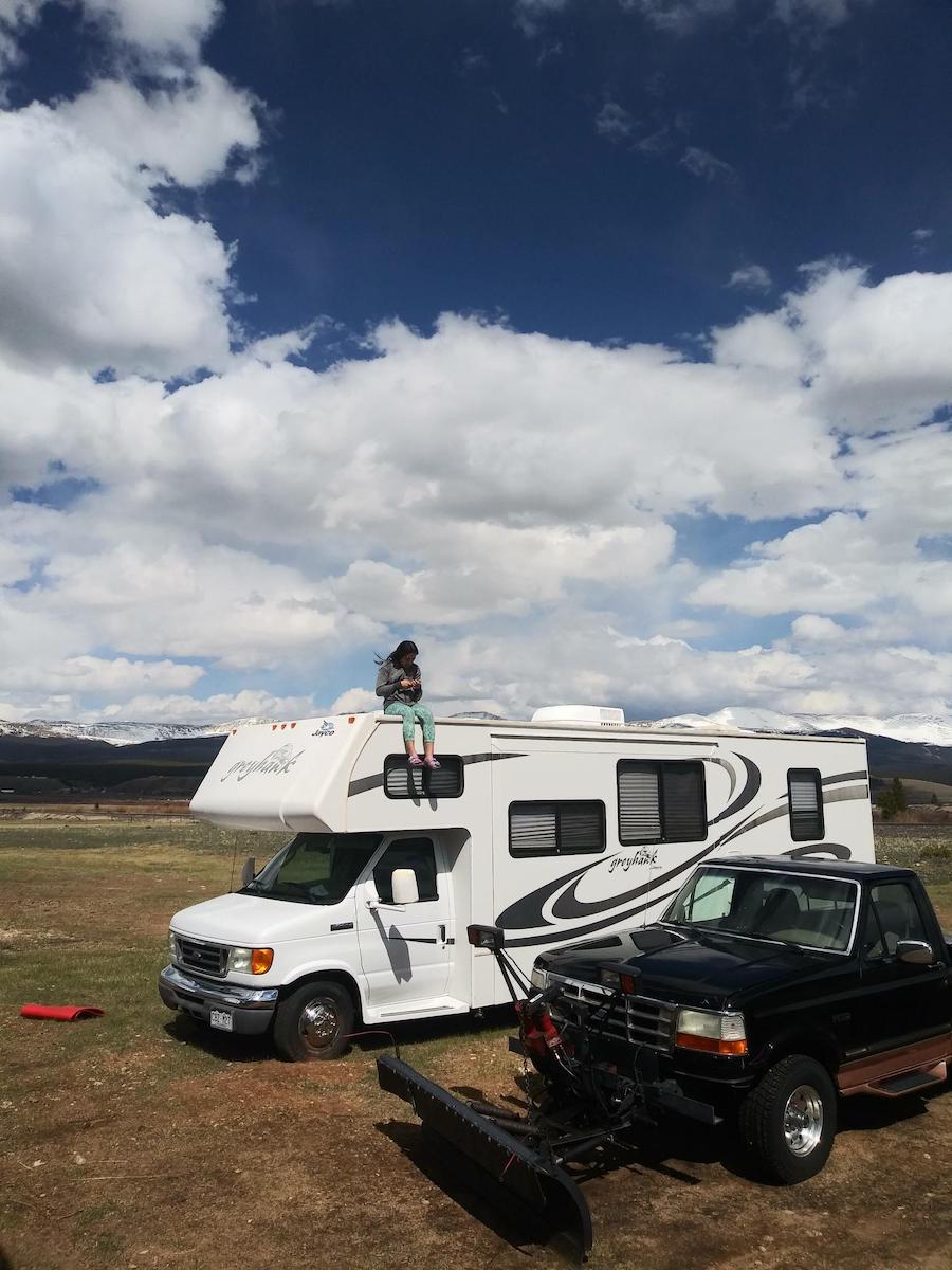私の彼氏もコロラドのロッキー山脈のなか、標高3,000mの村にある現在の自宅を自力で建てたとき、仮設住宅としてキャンピングカーに住んでいた。
