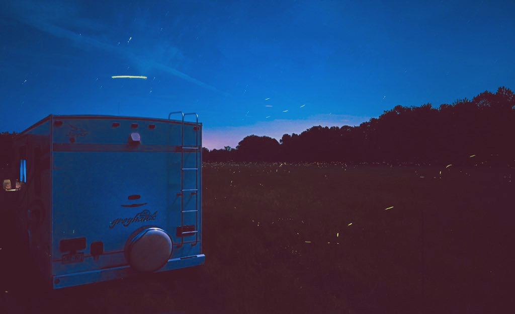 ふと窓の外を見ると、あちこちに蛍が飛んでいた。蛍に囲まれて車中泊するなんて、想像したこともなかった。