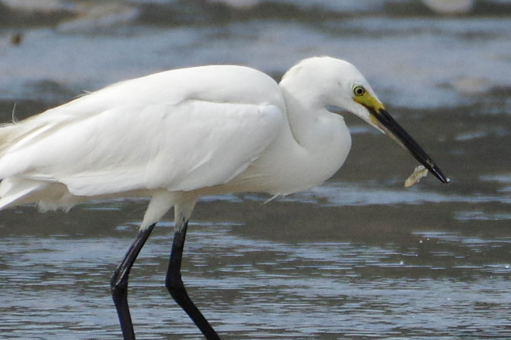 砂浜の川にて。コサギが軽快なステップでハゼを獲る。
