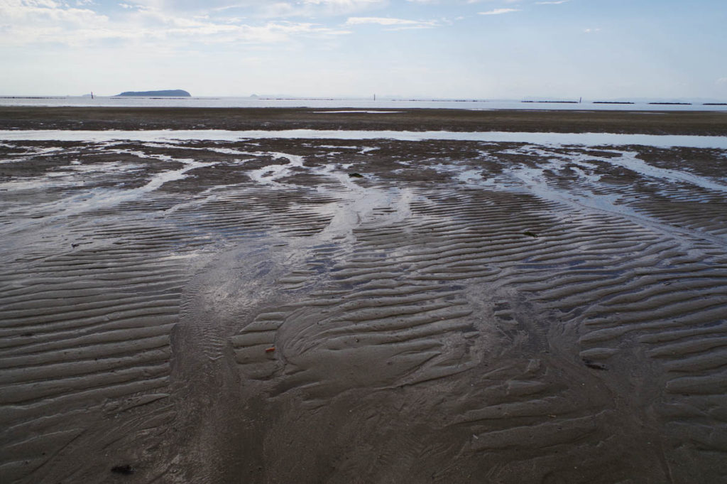 有明浜がある香川県西海岸は遠浅の海の宝庫。観音寺市有明町から三豊市仁尾町までの海岸線約8㎞にわたって、沖まで浅い海が続いている。