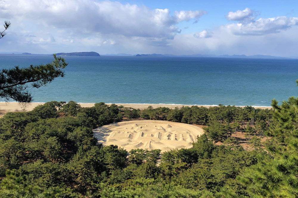 有明浜のすぐそばには、江戸時代に築かれた銭型の砂絵(直径約100m!)あり。