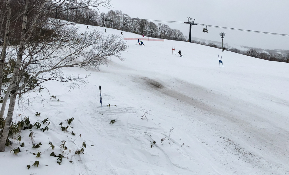2020年1月初旬の北海道・ニセコ。例年なら毎日深いパウダーに恵まれて溺れるように滑っているはずだ。しかし2019-2020シーズンは気温が下がりきらず、ゲレンデ脇にもクマザサが顔を出したまま。驚くべきことに、ゲレンデの中程では土が出ていた。