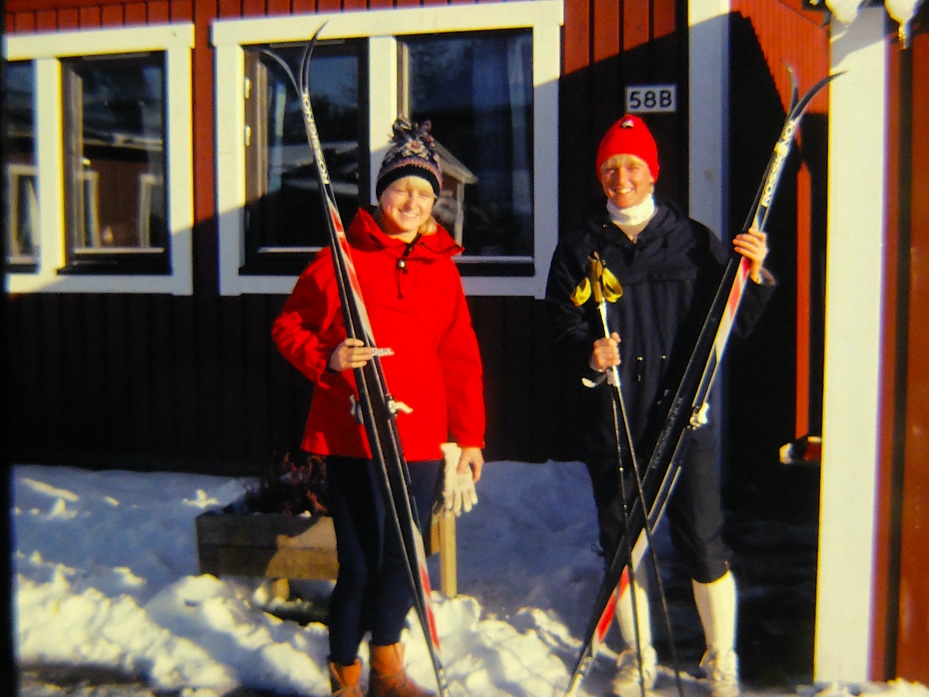 XCスキーの姉妹。左は姉のエリザベット、右は妹のカーリン。エリザベット=リサと知り合ったことでスウェーデン好きとなり、何度も訪れることとなった。おかげで僕はアルペンスキーはやめ、XCスキー一辺倒になった。カーリンにもスキー技術を随分教わった。彼女はスウェーデンナショナルチームのXCスキーの選手だ。