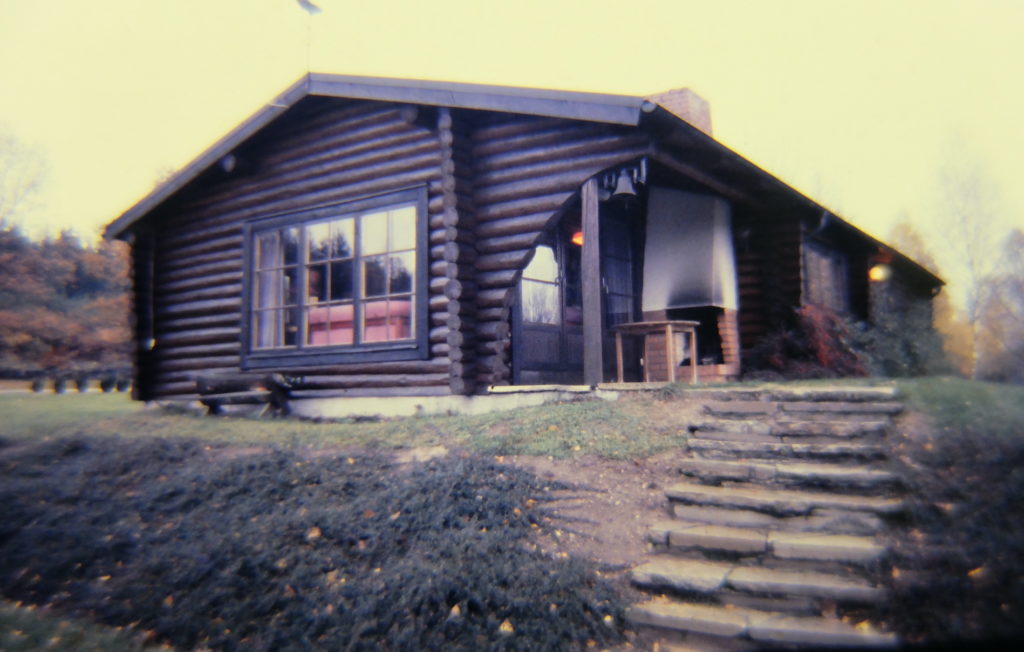 ABU社と同じ敷地内にあるゲストハウス。ログキャビンも北欧風。中は素朴だが快適にデザインされたダイニングルームとシッティングルームが。いくつかのベッドルームと”便利な”サウナがある。