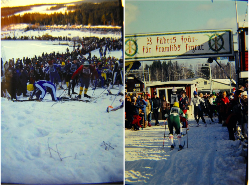スウェーデンではヴァーサロペ(*5)というXCスキーレースの取材がメインとなった。これはスウェーデン独立の歴史を物語るレース。僕たちは細かい情報もなく、なにしろそのレースの日にモーラ(*6)という街へ行けばわかるだろうと出かけた。そのモーラでホテルを探したがどこも満員、けんもほろろに断られた。どのホテルも同じだった。仕方なく車の中で一夜をあかそうと覚悟し、せめて夕食だけでもとレストランの扉を開けた。するとどうだろう、中にはタイツとシャツだけの男たちがゴロゴロしているではないか。場違いなところに入ってしまったなと思ったが、彼らも寝ようとしたら見慣れぬ外人が入ってきてびっくりしたことだっただろう。