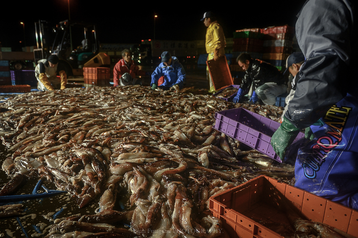10年ほど前はイカが非常にたくさん獲れていました。多くのイカ釣り漁船が灯す、たくさんの漁火が、煌々と羅臼の夜の海に浮かんでいました。2019年は豊漁だったとのことですが、かつてのようなたくさんのイカの水揚げを何年も続けて見ることは、近年は無かったように思います。