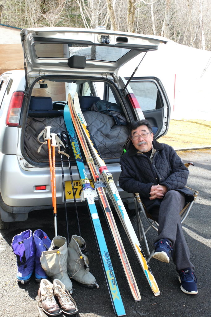 旗振りユーさんは、若い頃この戸隠スキー場でリフトの順番待ちで、横から入ってきたならず者とのいざこざが原因でアルペンスキーにピリオドを打ち、それ以来ゲレンデに背を向けXCスキーに転向。もっぱらかかとの上がるスキーばかりをしている。(「ユーさんの72年_4 戸隠でアルペンスキーにはまり、アルペンスキーをやめる」に詳しい)。雑誌の取材と称して各地のテレマークレースに出場、11番のゼッケンをもらえるくらいの腕になった。