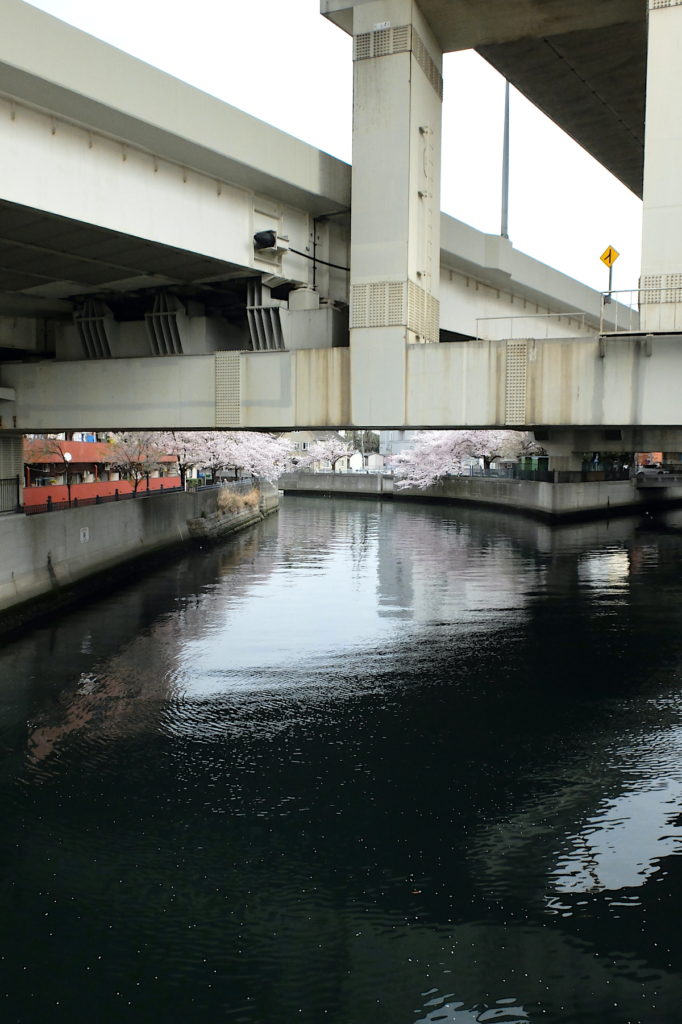 横浜という名前が生まれる前は、ここからが海だった。左が大岡川の続き、右は中村川。今は川の上は高速道路となっている。がっちりとコンクリート護岸された典型的な都市河川。こんなところでカヌーをしようと考えた最初の人は偉い。さらに川にエントリーするための階段をつくった市も偉い。