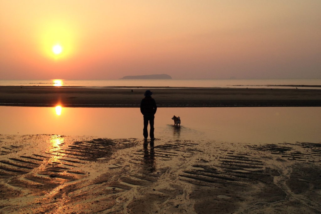 ・日本の夕日100選の、遠浅で白砂青松の浜がある。