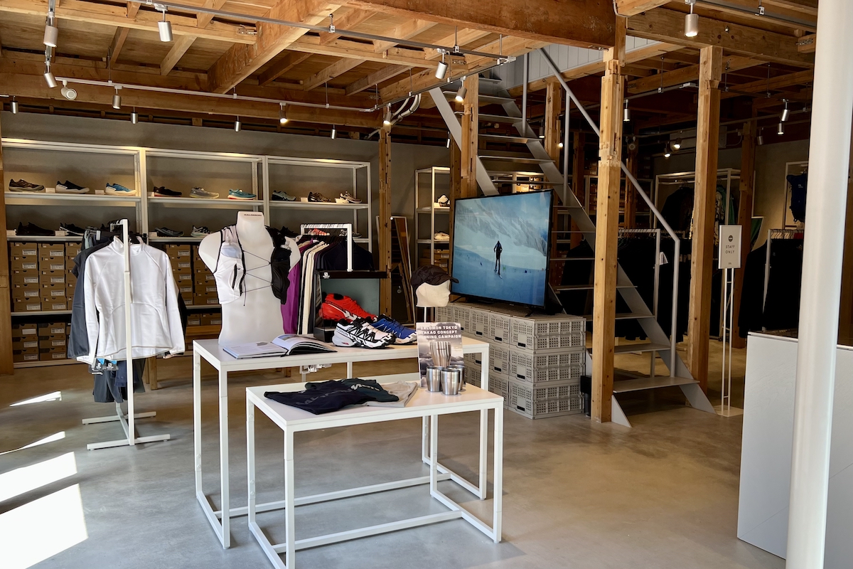 この新店の名称は「SALOMON TOKYO TAKAO CONCEPT」。その名の通りコンセプトショップの位置づけとなる。1階はもちろんサロモンの最新アイテムが並ぶショップなのだが、2階はコミュニティスペース —— コトの発信基地となっているのだ。