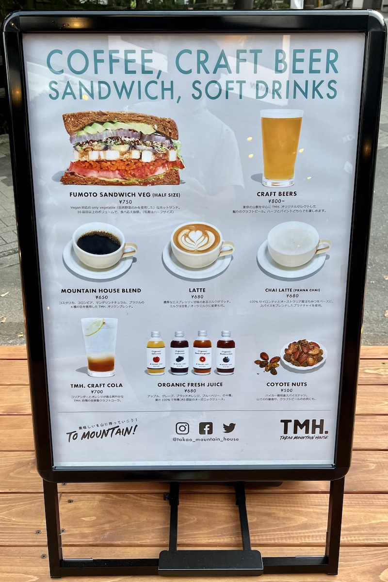 登山の前に朝食としてサンドイッチとコーヒー。登山後は友人や、山で出会った人とビールを飲みながら山談義に花を咲かせる。「SALOMON TOKYO TAKAO CONCEPT」と、そして「TMH.」は高尾山の “コト=魅力” の発信基地となっていくことだろう。