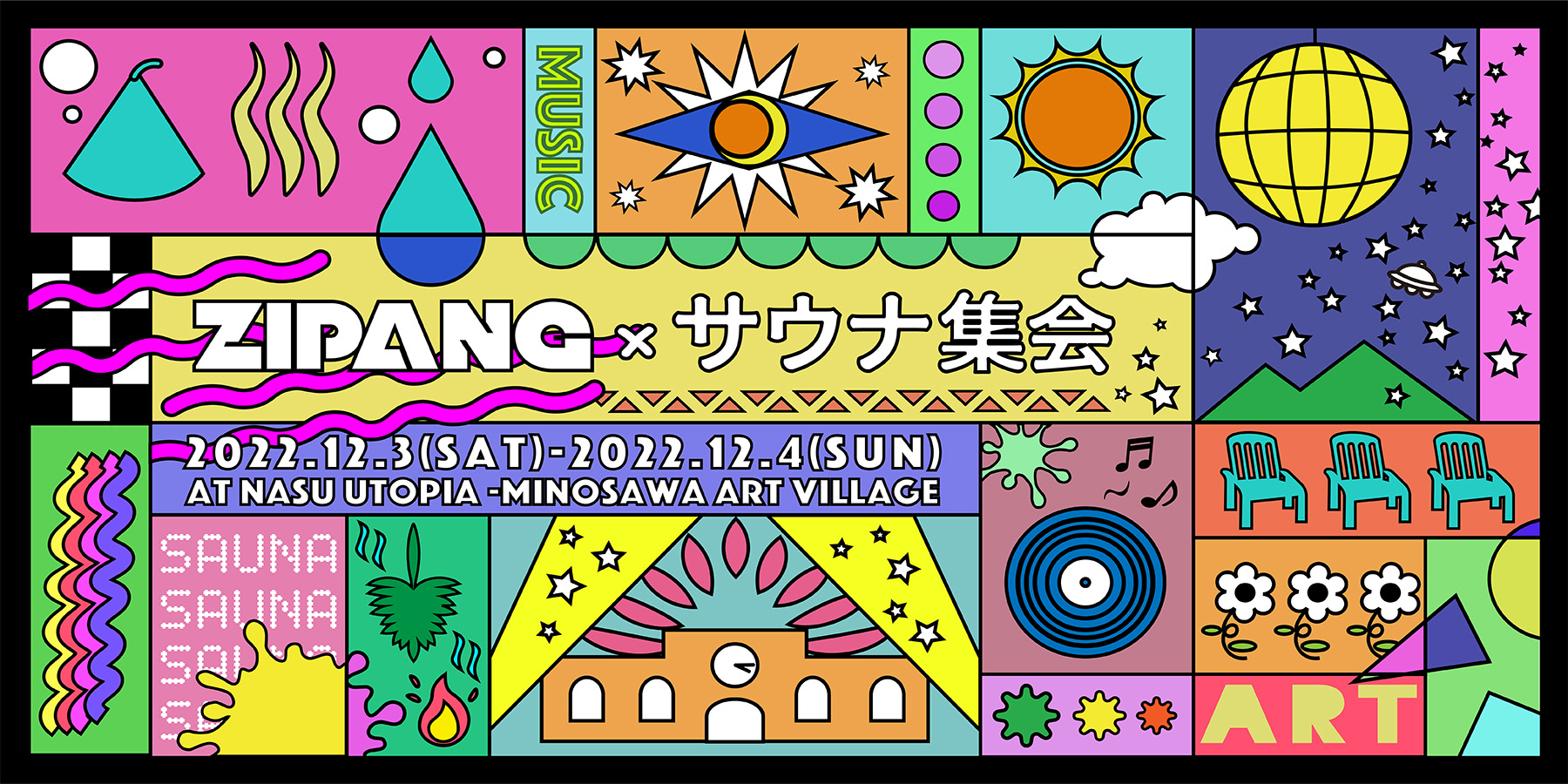 2017年に、 いち早くサウナテントをフェスのコンテンツにした「ZIPANG」。サウナ x アートをフィーチャーしたイベントを、廃校をアートリノベーションした那須ユートピアで開催する。日が暮れてからは校舎全体をマッピングするマッピングショーやライティングショーなどが行われ、職員室をラウンジにリノベーションされた空間では、クラブ空間のようなダンスミュージックが楽しめるという。那須ユートピアに常設されているコンクリートサウナだけではなく、サウナバスも関東に初出店する。Aufgießer(熱波師)も参加するから、サウナだけでも十分に満足できるはずだ。ちなみにキャンプは体育館のなかで可能。