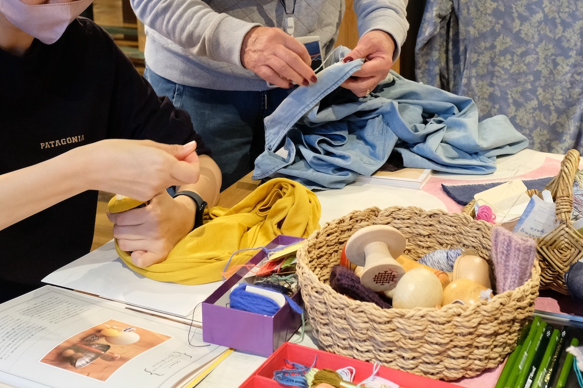 手縫いで穴の空いた靴下の補修を学ぶワークショップを開催。