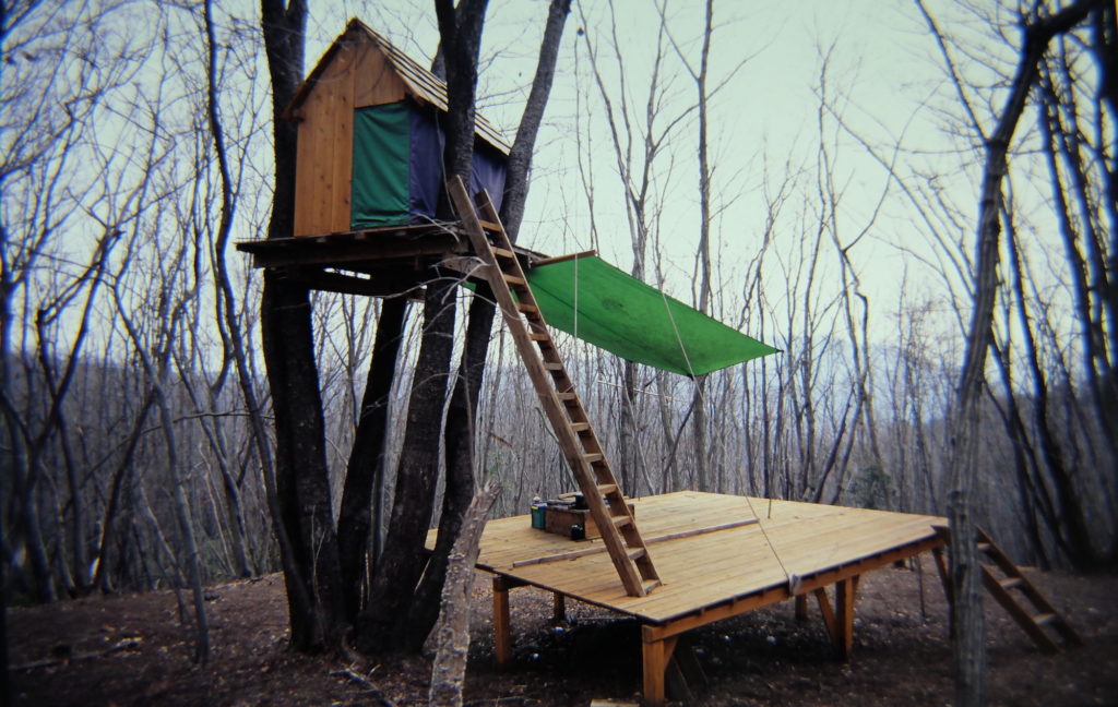 その間にこの山を利用し、ぜひともやってみたいことがあった。それはツリーハウス(*4)をつくることだ。ツリーハウスにそれほど興味があったわけではなく、知識も持ってはいなかった。キャンピングデッキが増え、大勢で使うようになり、もっと山の奥に引っ込もうかな程度に思ってのことだった。