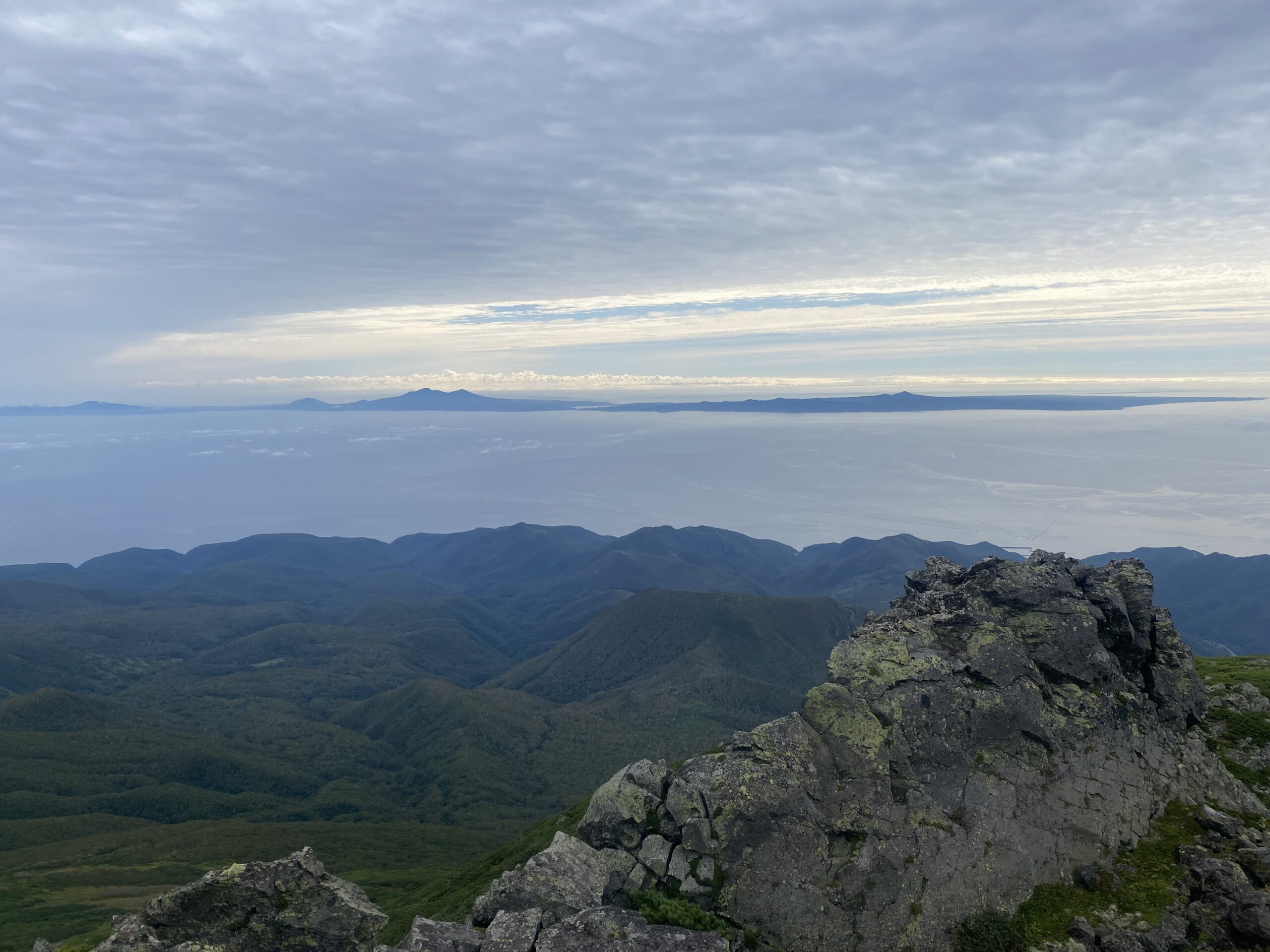 羅臼岳山頂から遙か国後島を望む