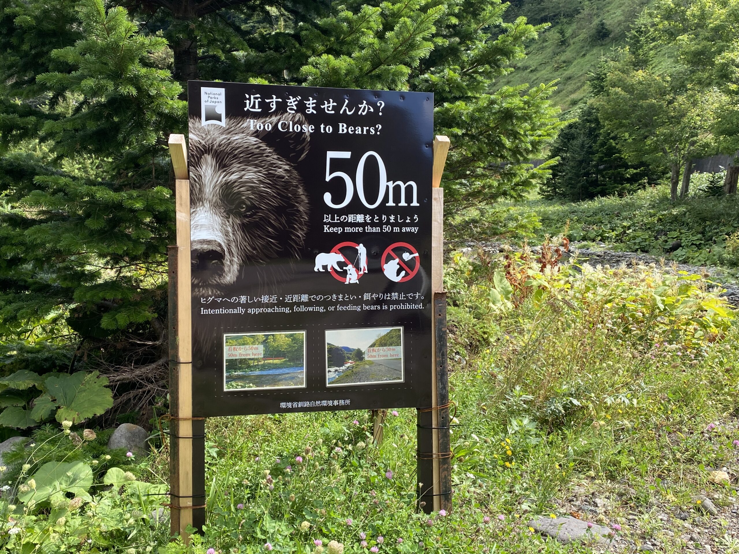 ヒグマの目撃例の多い岩尾別川の清流