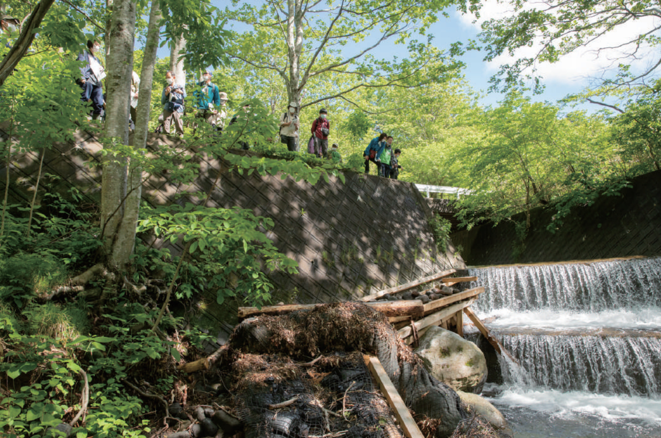 岩尾別川でサクラマスの天然遡上のための手作り魚道を見学(ニュースレターNo.32より)