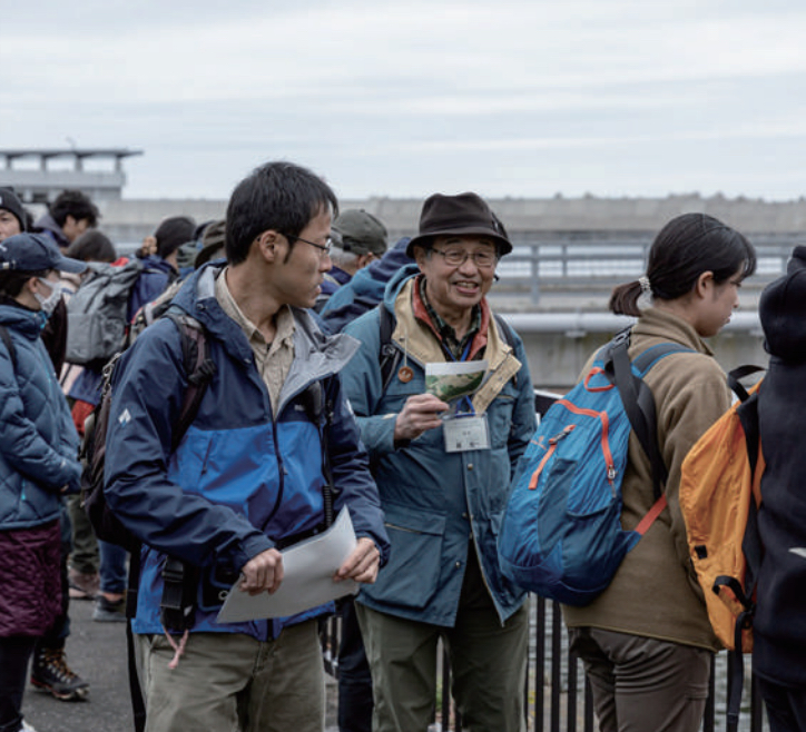 ネイチャーキャンパスで参加者に説明を行なう梶光一代表理事(ニュースレターNo.31より)