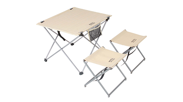 さて、そんなNEUTRALのキャンプギアのラインナップから、今回紹介するのはコンパクトテーブル&チェア。どちらも折りたたむと棒状にまとめられて持ち運びに便利。しかも、テーブルが738gに、チェアが1脚425gと超軽量。テーブルは布天板ですが、フレームを内蔵していて安定していますし、チェアも耐荷重100kgと安心のスペックです。